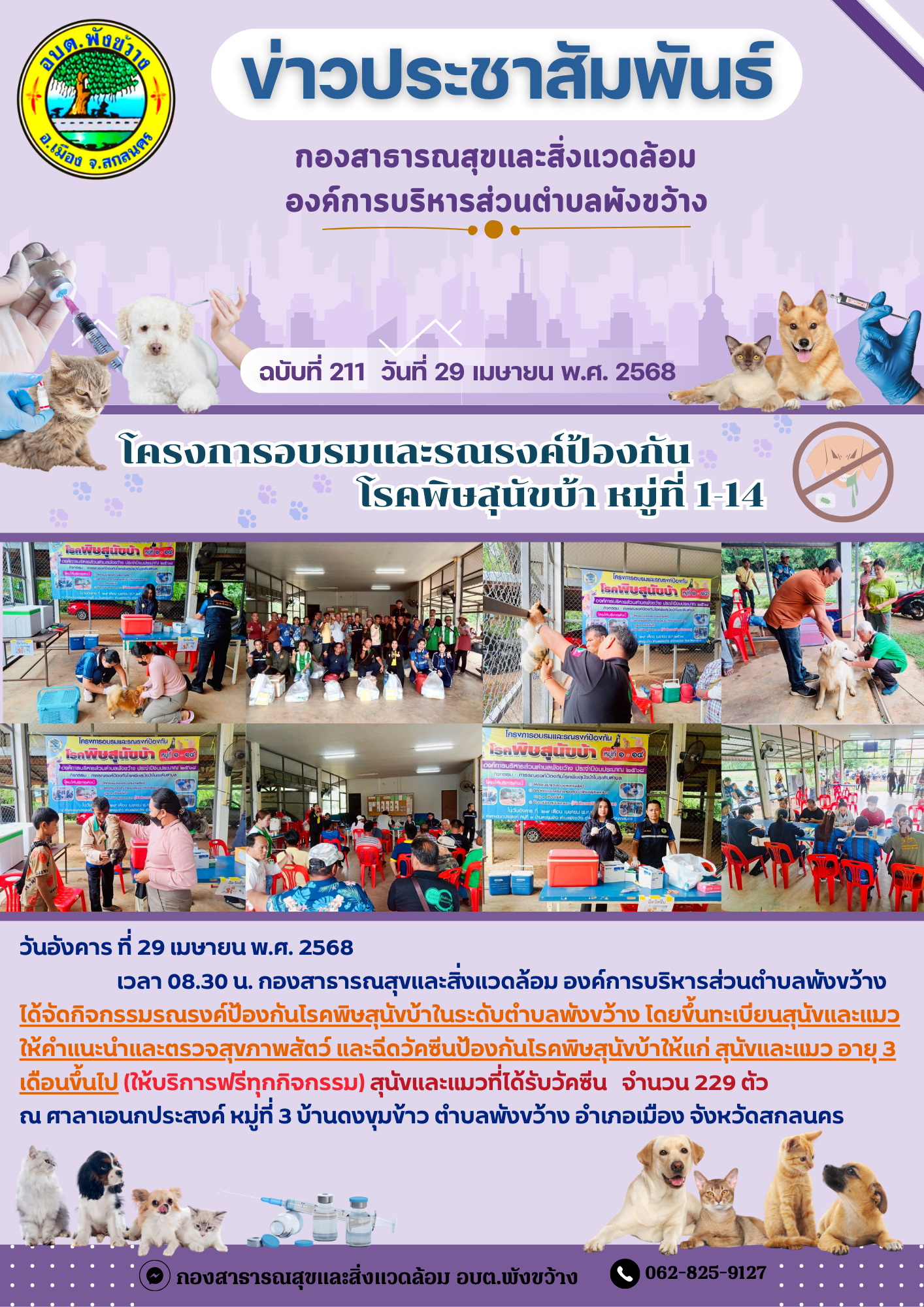 กิจกรรมรณรงค์ป้องกันโรคพิษสุนัขบ้าในระดับตำบลพังขว้าง [29 เมษายน 2568]