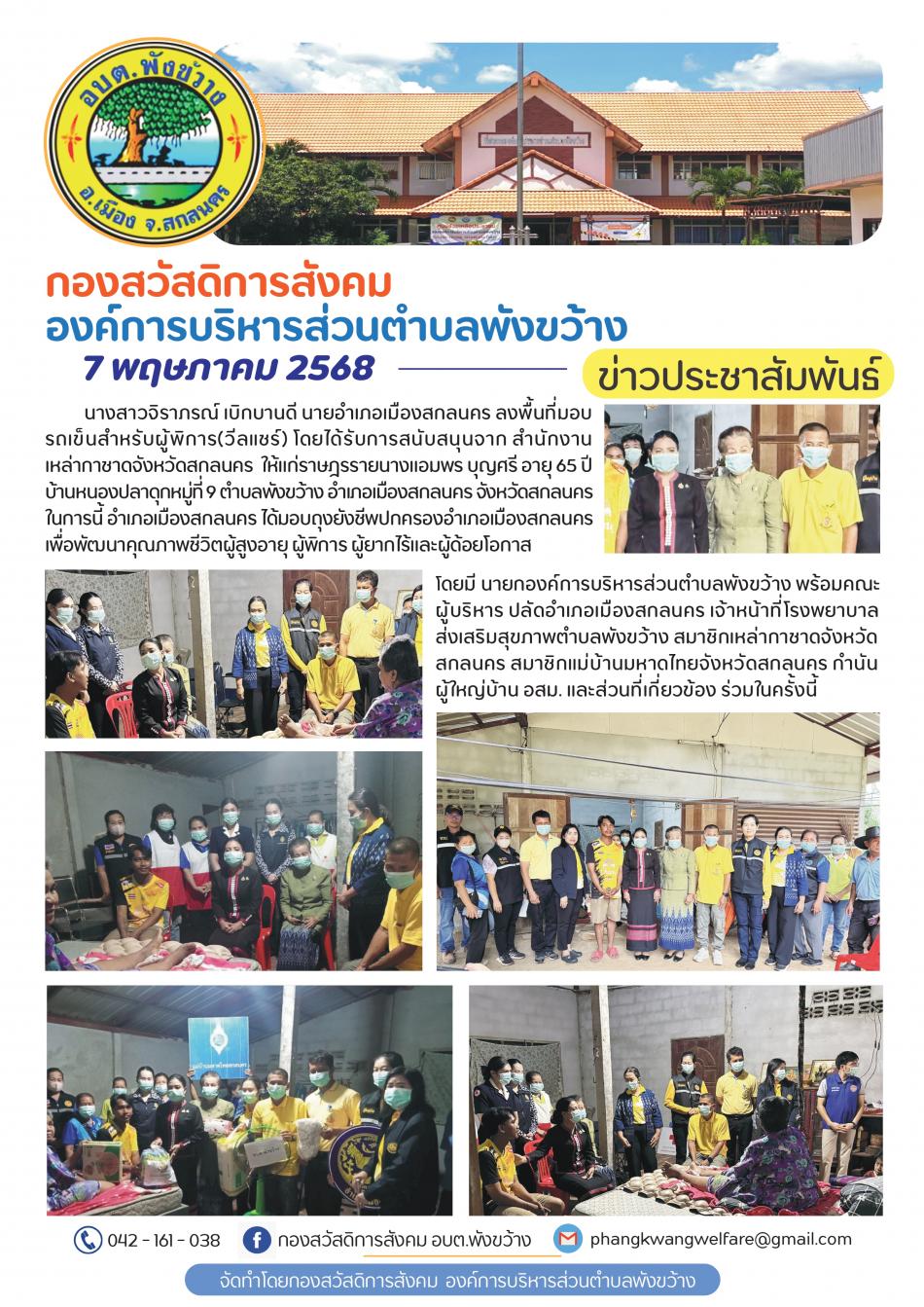 นายอำเภอเมืองสกลนครและนายกอบต.พังขว้าง ร่วมลงพื้นที่มอบรถเข็นสำหรับผู้พิการ(วีลแชร์)ฯ [7 พฤษภาคม 2568]