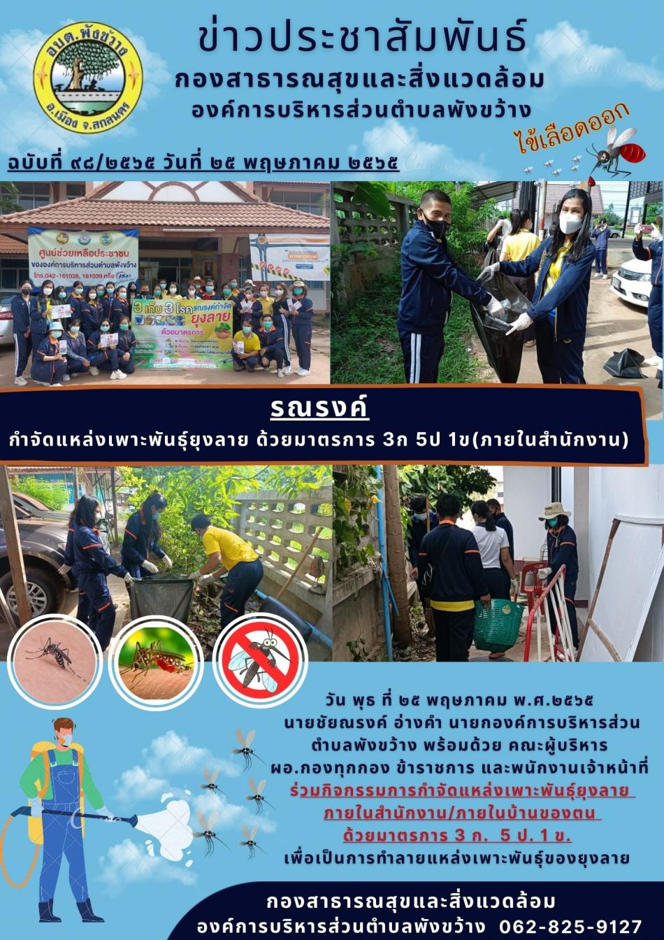 รณรงค์ กำจัดแหล่งเพาะพันธุ์ยุงลาย ด้วยมาตรการ 3ก 5ป 1ข(ภายในสำนักงาน) กองสาธารณสุขและสิ่งแวดล้อม องค์การบริหารส่วนตำบลพังขว้าง [25 พฤษภาคม 2565]