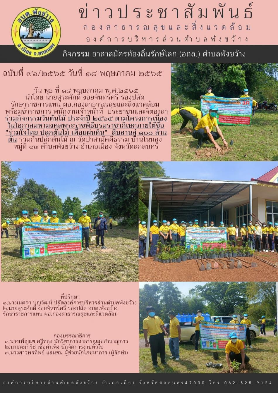 กิจกรรม อาสาสมัครท้องถิ่นรักษ์โลกตำบลพังขว้าง (อถล.ตำบลพังขว้าง) กองสาธารณสุขและสิ่งแวดล้อม องค์การบริหารส่วนตำบลพังขว้าง [18 พฤษภาคม 2565]
