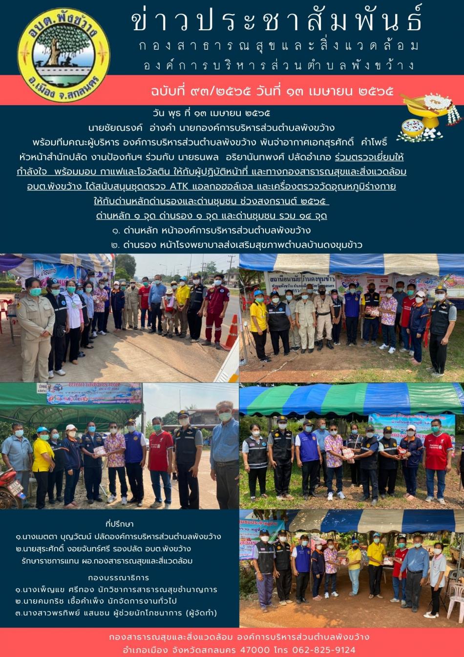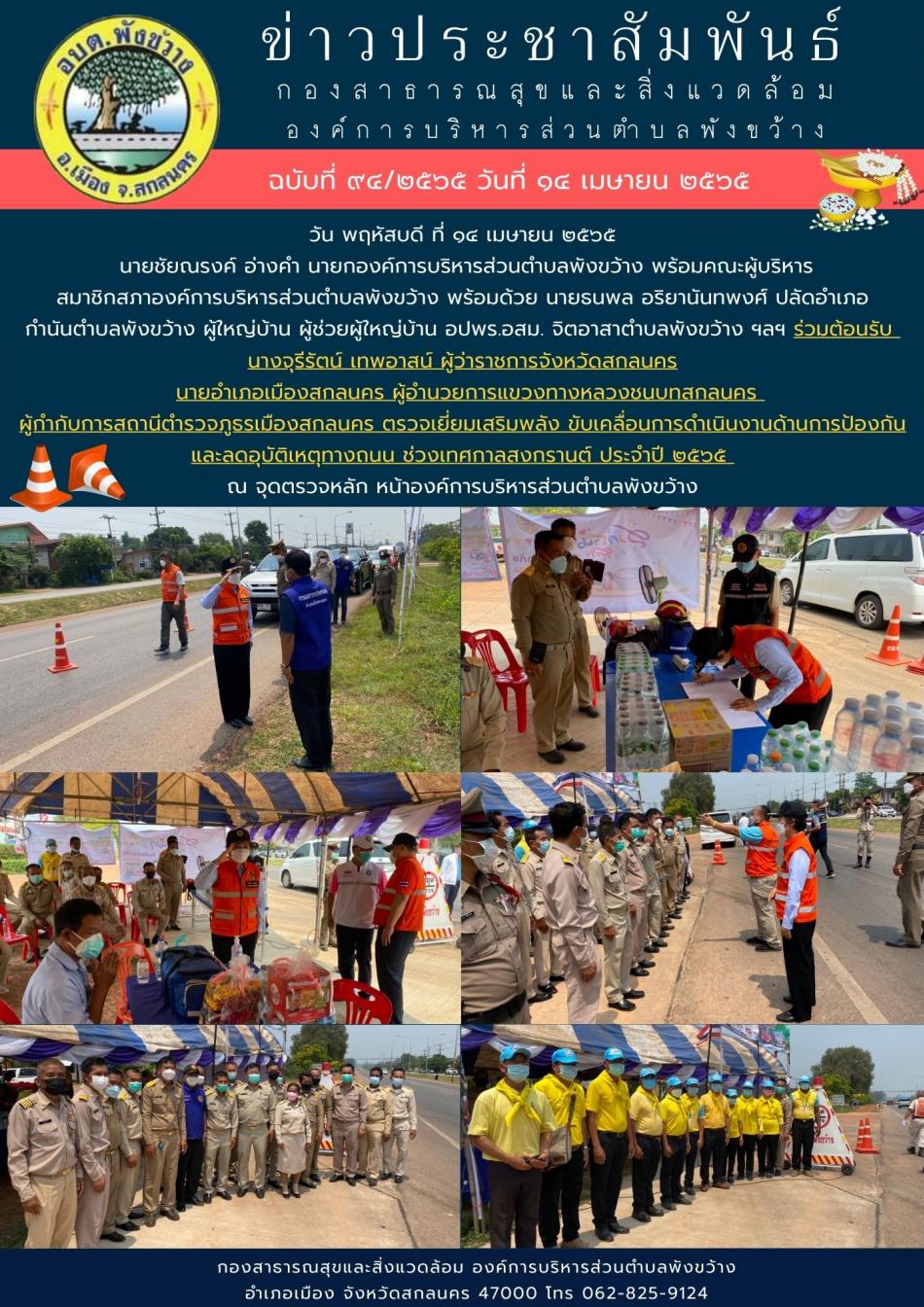 กิจกรรมผู้ว่าราชการจังหวัดสกลนคร ตรวจเยี่ยมเสริมพลัง ขับเคลื่อนการดำเนินงานด้านการป้องกันและลดอุบัติเหตุทางถนน ช่วงเทศกาลสงกรานต์ ประจำปี ๒๕๖๕ ณ จุดตรวจหลัก หน้าองค์การบริหารส่วนตำบลพังขว้าง [14 เมษายน 2565]