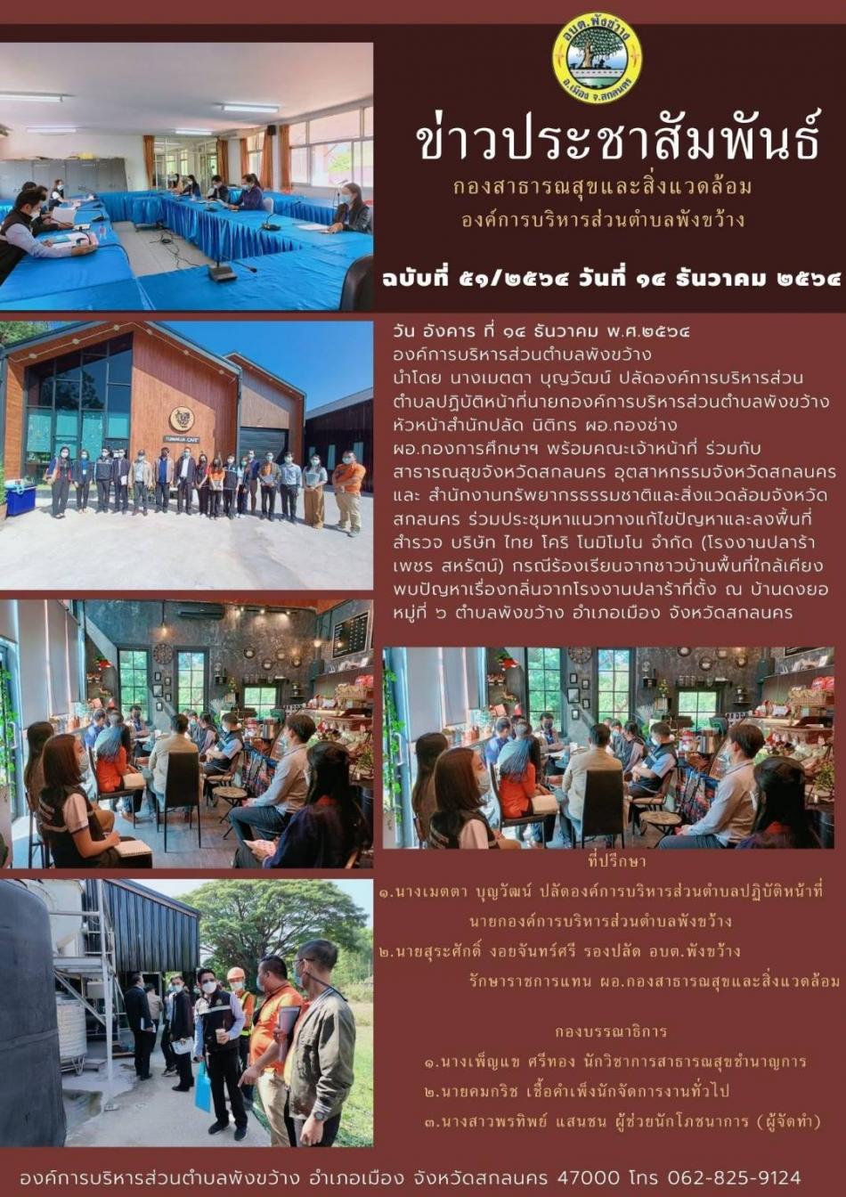 ลงพื้นที่สำรวจ บริษัท ไทย โคริ โนมิโมโน จำกัด (โรงงานปลาร้าเพชร สหรัตน์) กรณีร้องเรียนจากชาวบ้านพื้นที่ใกล้เคียงพบปัญหาเรื่องกลิ่นจากโรงงานปลาร้า [14 ธันวาคม 2564]