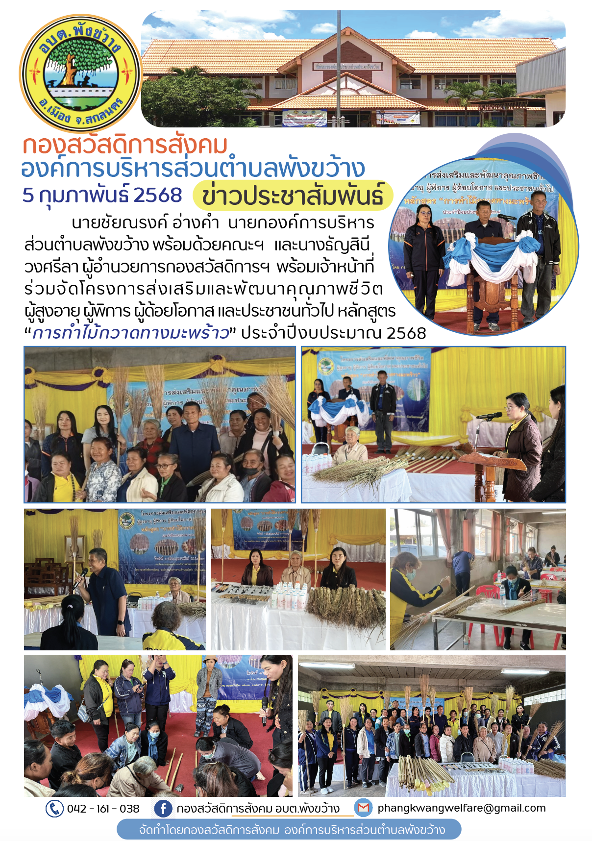 โครงการส่งเสริมและพัฒนาคุณภาพชีวิต ผู้สูงอายุ ผู้พิการ ผู้ด้อยโอกาส และประชาชนทั่วไป หลักสูตร “การทำไม้กวาดทางมะพร้าว” ประจำปีงบประมาณ 2568 [5 กุมภาพันธ์ 2568]