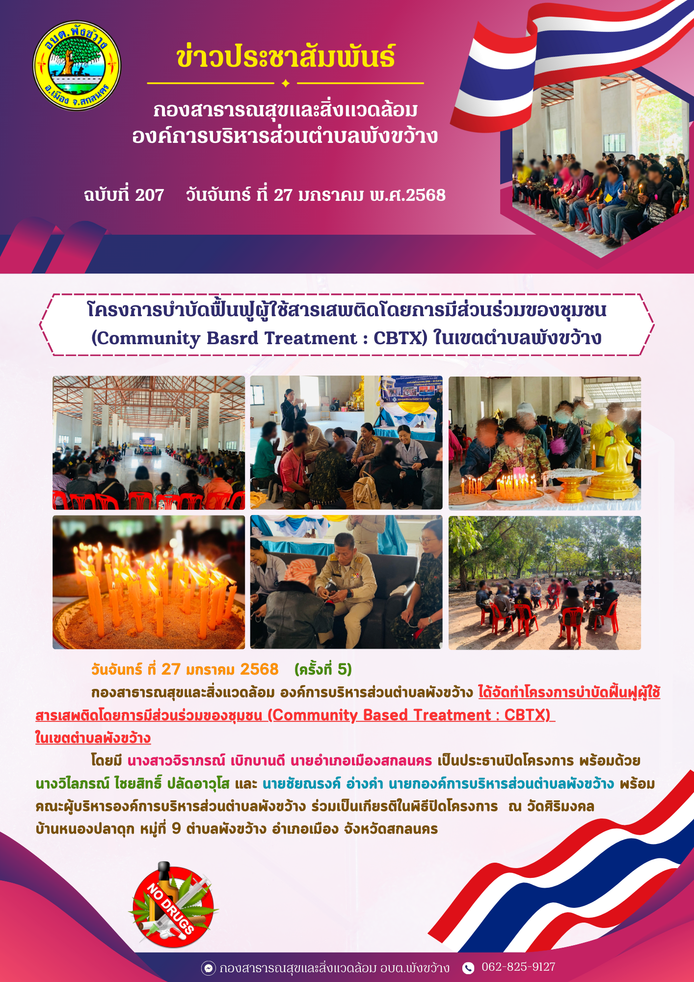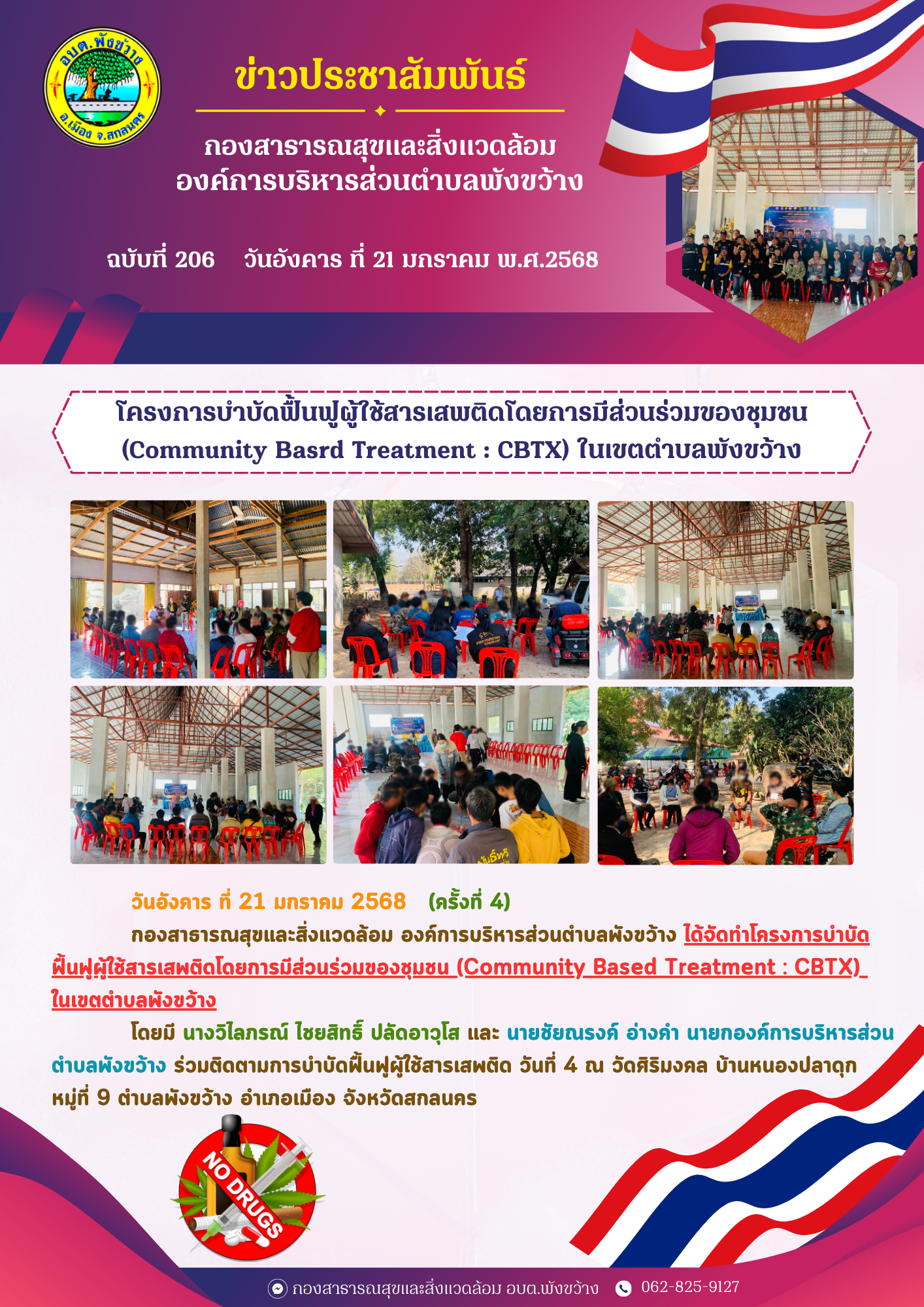 โครงการบำบัดฟื้นฟูผู้ใช้สารเสพติดโดยการมีส่วนร่วมของชุมชน (Community Basrd Treatment : CBTX) ในเขตตำบลพังขว้าง (วันที่ 5) [27 มกราคม 2568]