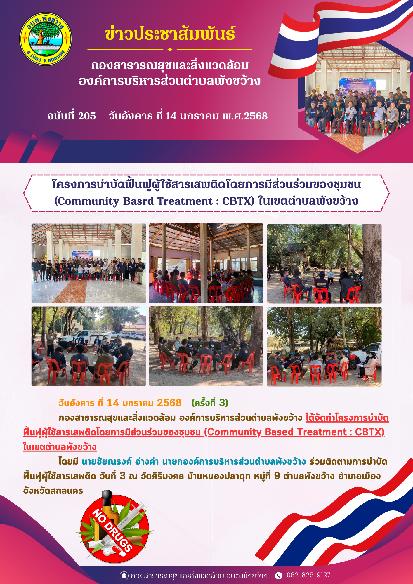 โครงการบำบัดฟื้นฟูผู้ใช้สารเสพติดโดยการมีส่วนร่วมของชุมชน (Community Basrd Treatment : CBTX) ในเขตตำบลพังขว้าง (วันที่ 3) [14 มกราคม 2568]