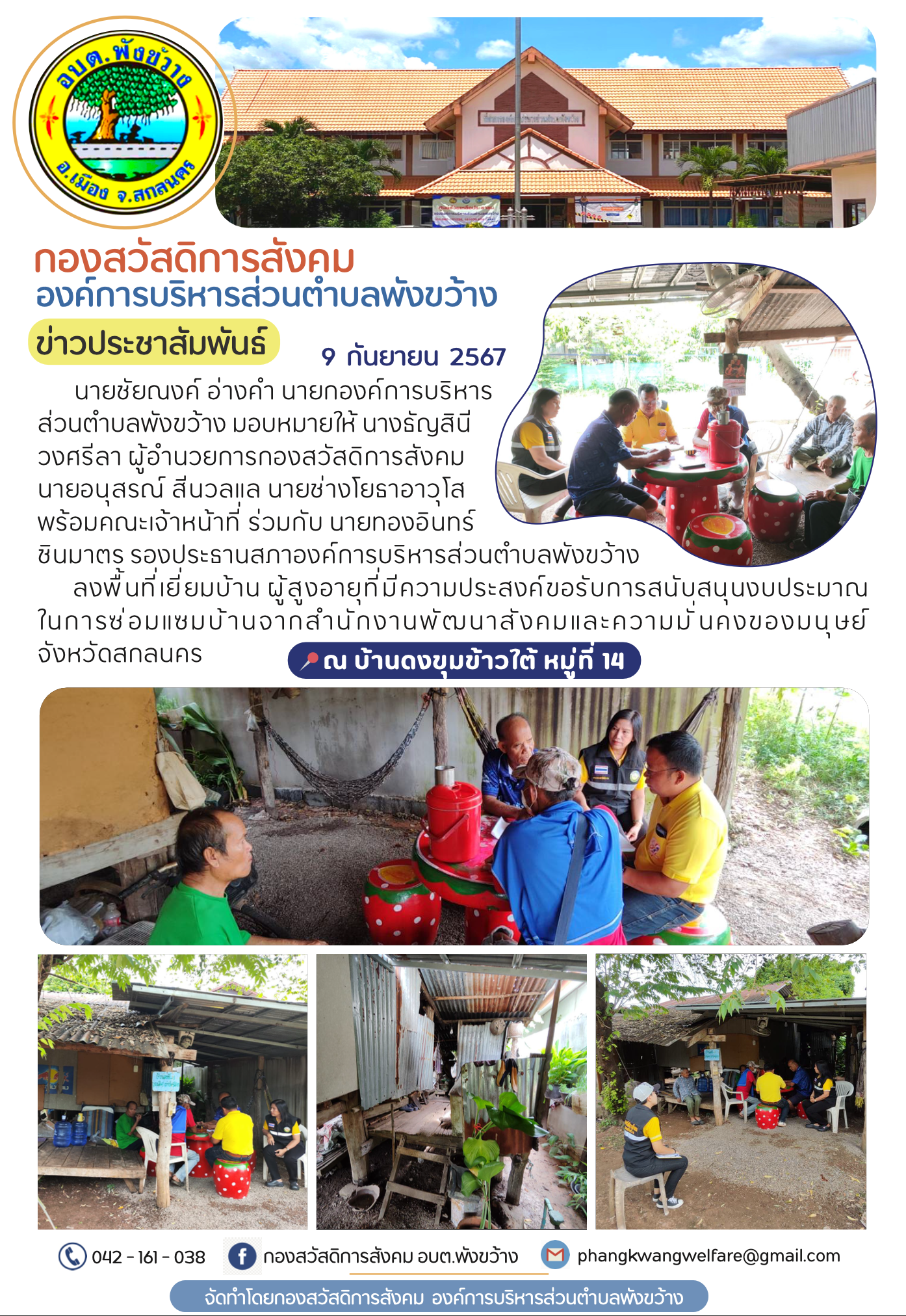 ลงพื้นที่เยี่ยมบ้าน ผู้สูงอายุที่มีความประสงค์ขอรับการสนับสนุนงบประมาณในการซ่อมแซมบ้าน [9 กันยายน 2567]
