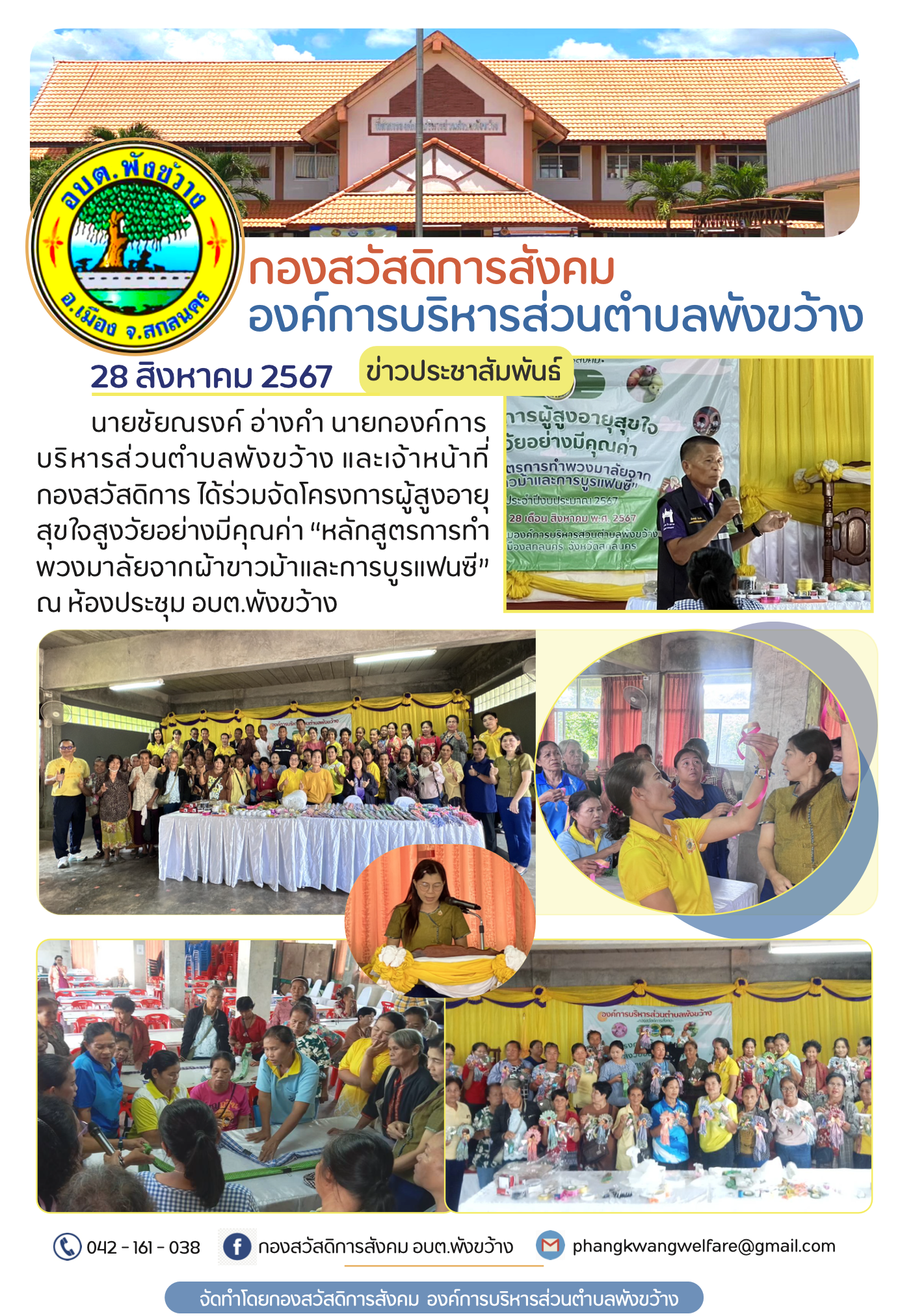 โครงการผู้สูงอายุสุขใจสูงวัยอย่างมีคุณค่า “หลักสูตรการทำพวงมาลัยจากผ้าขาวม้าและการบูรแฟนซี” [28 สิงหาคม 2567]