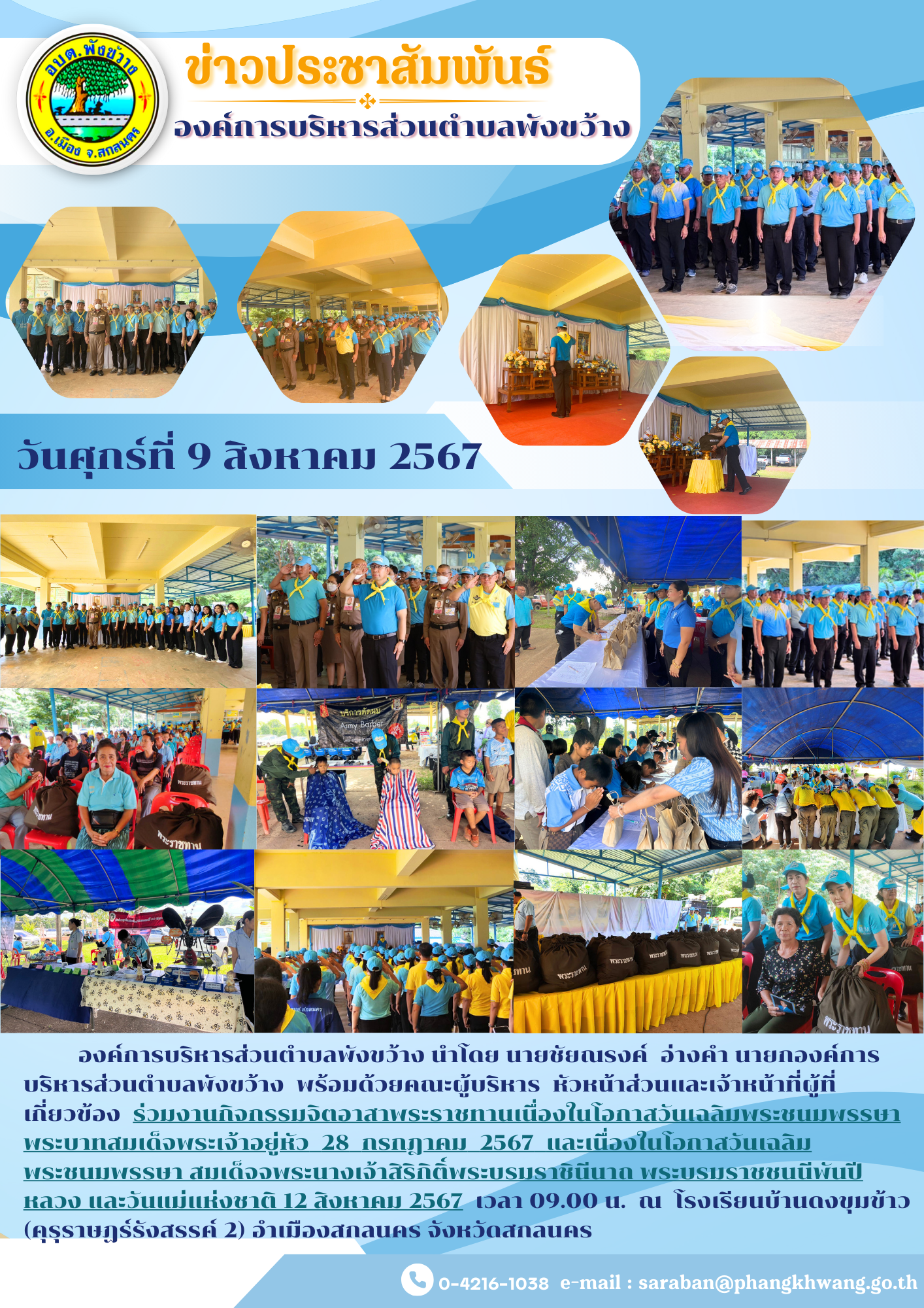 ร่วมงานกิจกรรมจิตอาสาพระราชทานเนื่องในโอกาสวันเฉลิมพระชนมพรรษา พระบาทสมเด็จพระเจ้าอยู่หัว 28 กรกฎาคม 2567 และเนื่องในโอกาสวันเฉลิมพระชนมพรรษา สมเด็จจพระนางเจ้าสิริกิติ์พระบรมราชินีนาถ พระบรมราชชนนีพันปีหลวง... [9 สิงหาคม 2567]