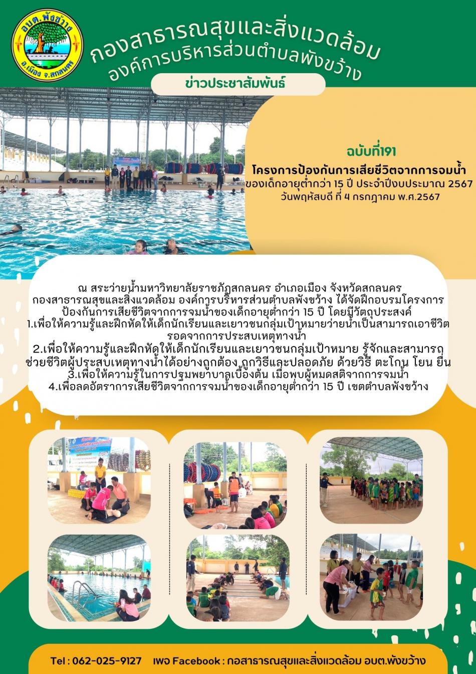 โครงการป้องกันการเสียชีวิตจากการจมน้ำของเด็กอายุต่ำกว่า 15 ปี ประจำปีงบประมาณ 2567 [4 กรกฎาคม 2567]