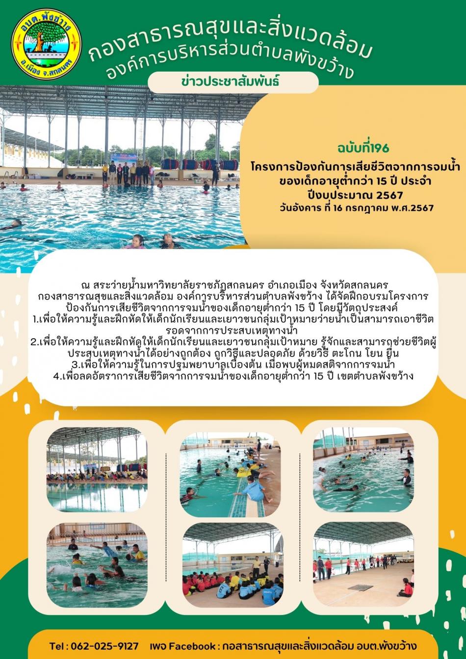 โครงการป้องกันการเสียชีวิตจากการจมน้ำของเด็กอายุต่ำกว่า 15 ปี ประจำปีงบประมาณ 2567 วันที่ 3 [16 กรกฎาคม 2567]