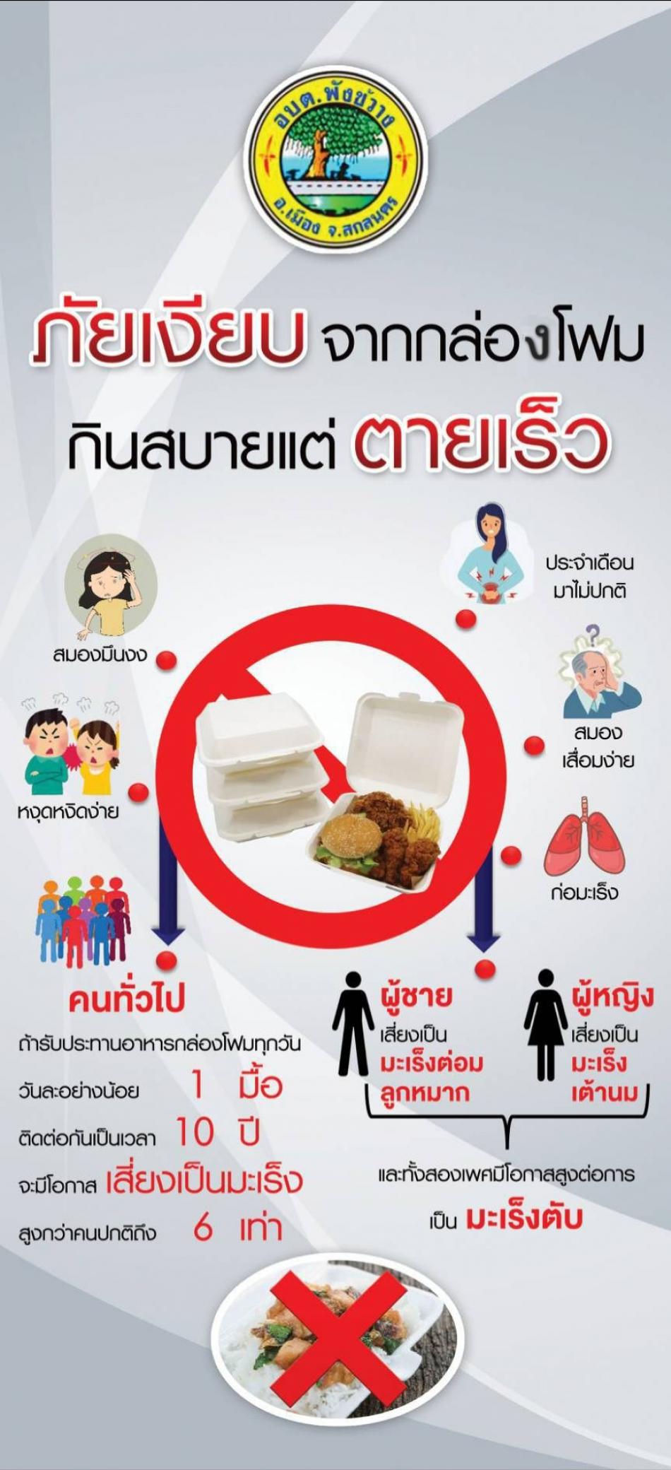 กองสาธารณสุขและสิ่งแวดล้อม อบต.พังขว้าง ประชาสัมพันธ์ เรื่องภัยเงียบจากกล่องโฟม กิสบาย แต่ตายเร็ว [23 สิงหาคม 2566]