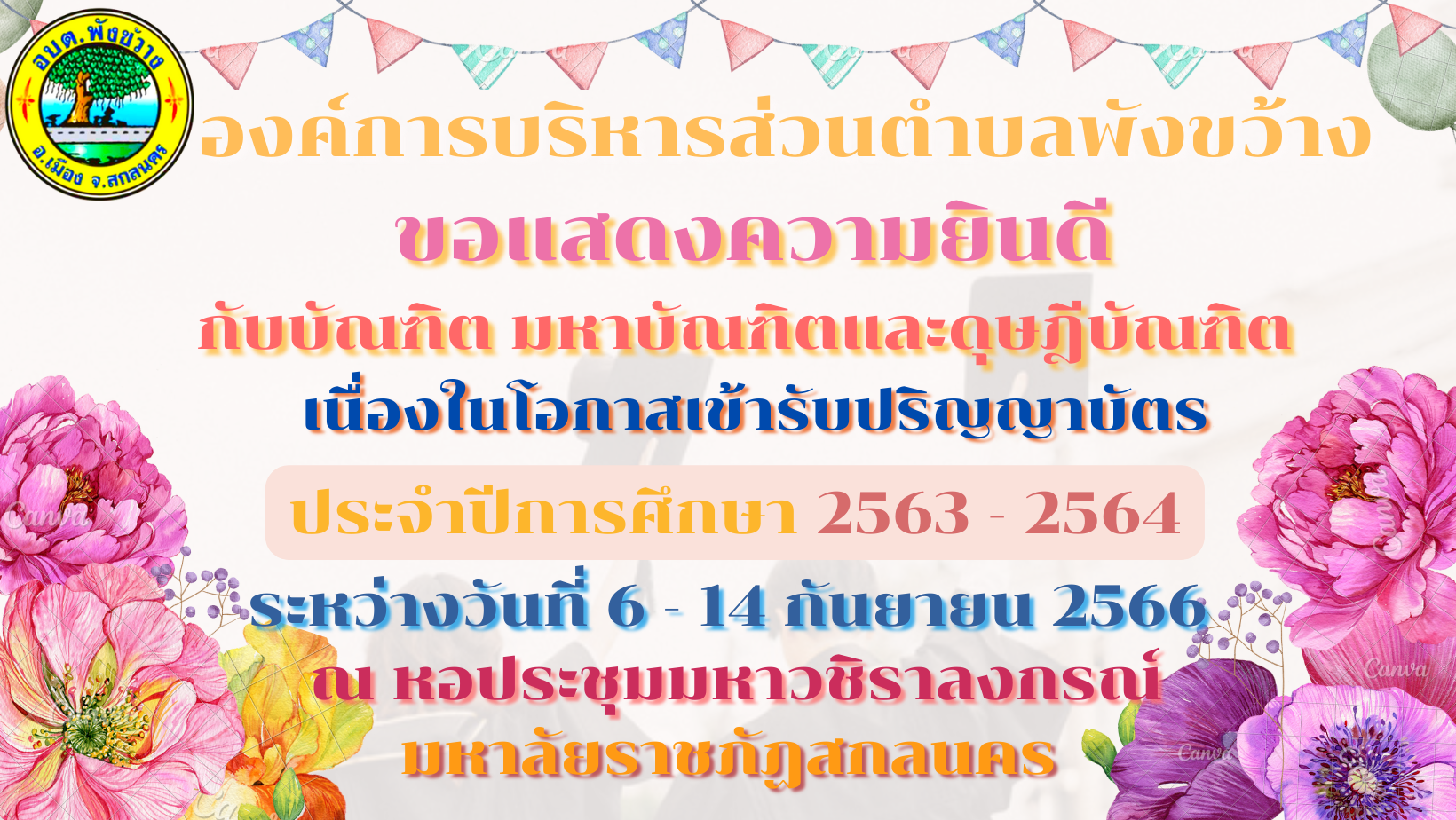 องค์การบริหารส่วนตำบลพังขว้างขอแสดงความยินดี กับบัณฑิต มหาบัณฑิตและดุษฎีบัณฑิต เนื่องในโอกาสเข้ารับปริญญาบัตรประจำปีการศึกษา 2563 - 2564 ระหว่างวันที่ 6 - 14 กันยายน 2566 ณ หอประชุมมหาวชิราลงกรณ์ มหาลัยราชภัฏสกลนคร [1 กันยายน 2566]