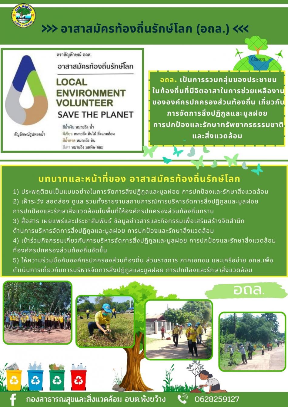 กองสาธารณสุขและสิ่งแวดล้อม อบต.พังขว้าง ประชาสัมพันธ์ความหมายและบทบาทหน้าที่ของอาสาสมัครท้องถิ่นรักโลกษื (อถล.) [12 มิถุนายน 2566]