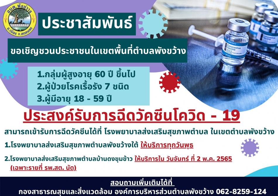 ขอเชิญชวนประชาชนในเขตพื้นที่ตำบลพังขว้าง ประสงค์รับการฉีดวัคซีนโควิด - 19 [27 เมษายน 2565]