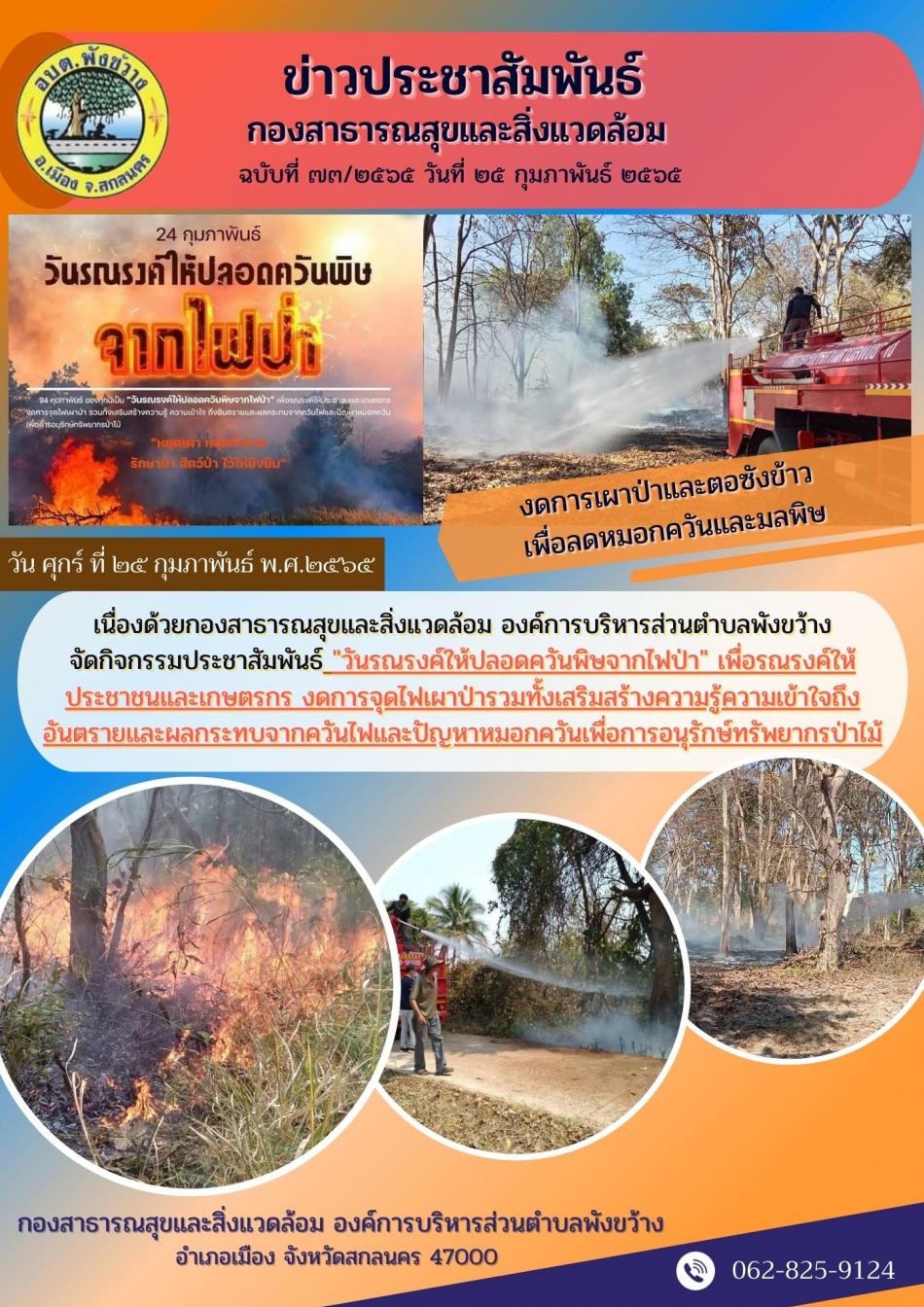 กองสาธารณสุขและสิ่งแวดล้อม อบต.พังขว้าง ประชาสัมพันธ์งดการเผาป่าและตอซังข้าวเพื่อลดหมอกควันและมลพิษ [25 กุมภาพันธ์ 2565]