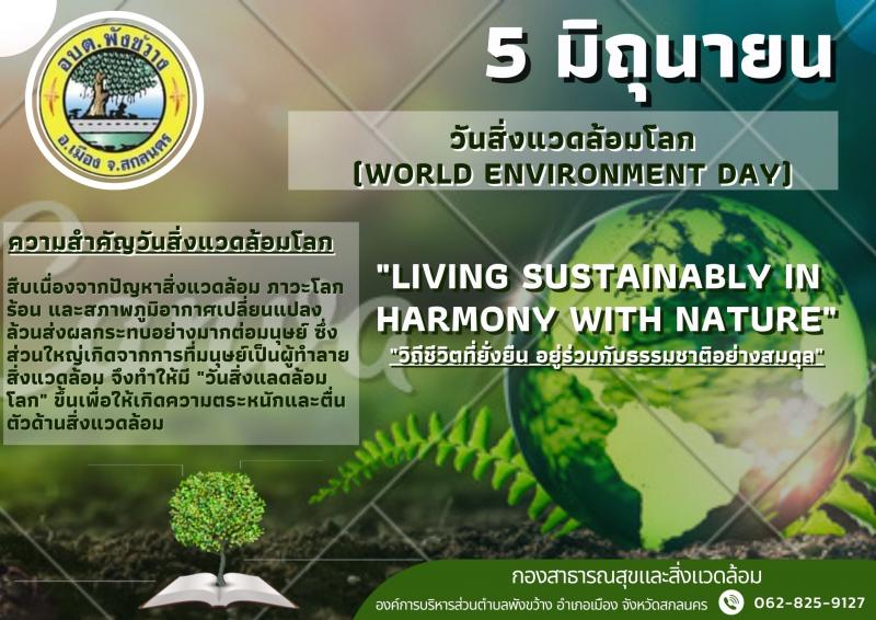 5 มิถุนายน วันสิ่งแวดล้อมโลก (World Environment Day) "Living Sustainably in Harmony with Nature" "วิถีชีวิตที่ยั่งยืน อยู่ร่วมกับธรรมชาติอย่างสมดุล" [5 มิถุนายน 2565]