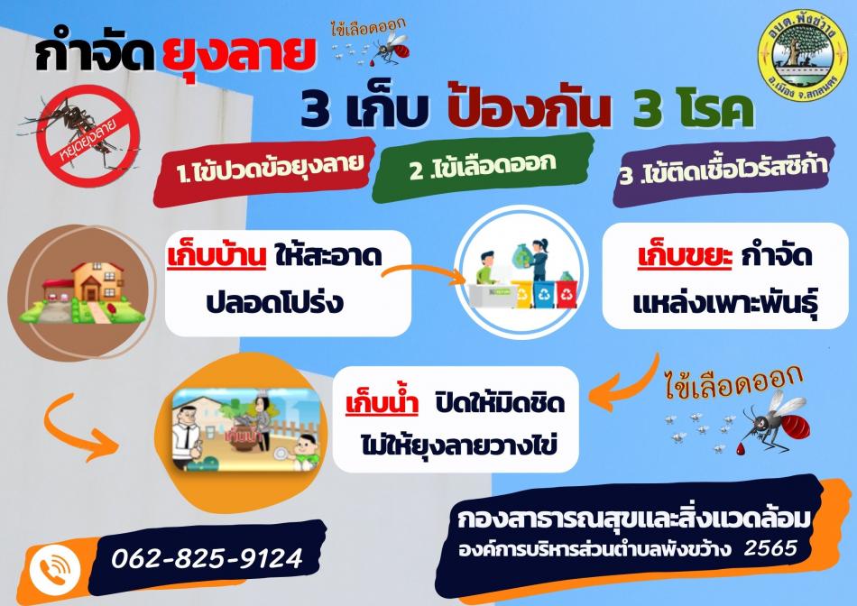 รณรงค์กำจัดยุงลาย ด้วยมาตรการ 3 เก็บ 3โรค กองสาธารณสุขและสิ่งแวดล้อม องค์การบริหารส่วนตำบลพังขว้าง [6 พฤษภาคม 2565]