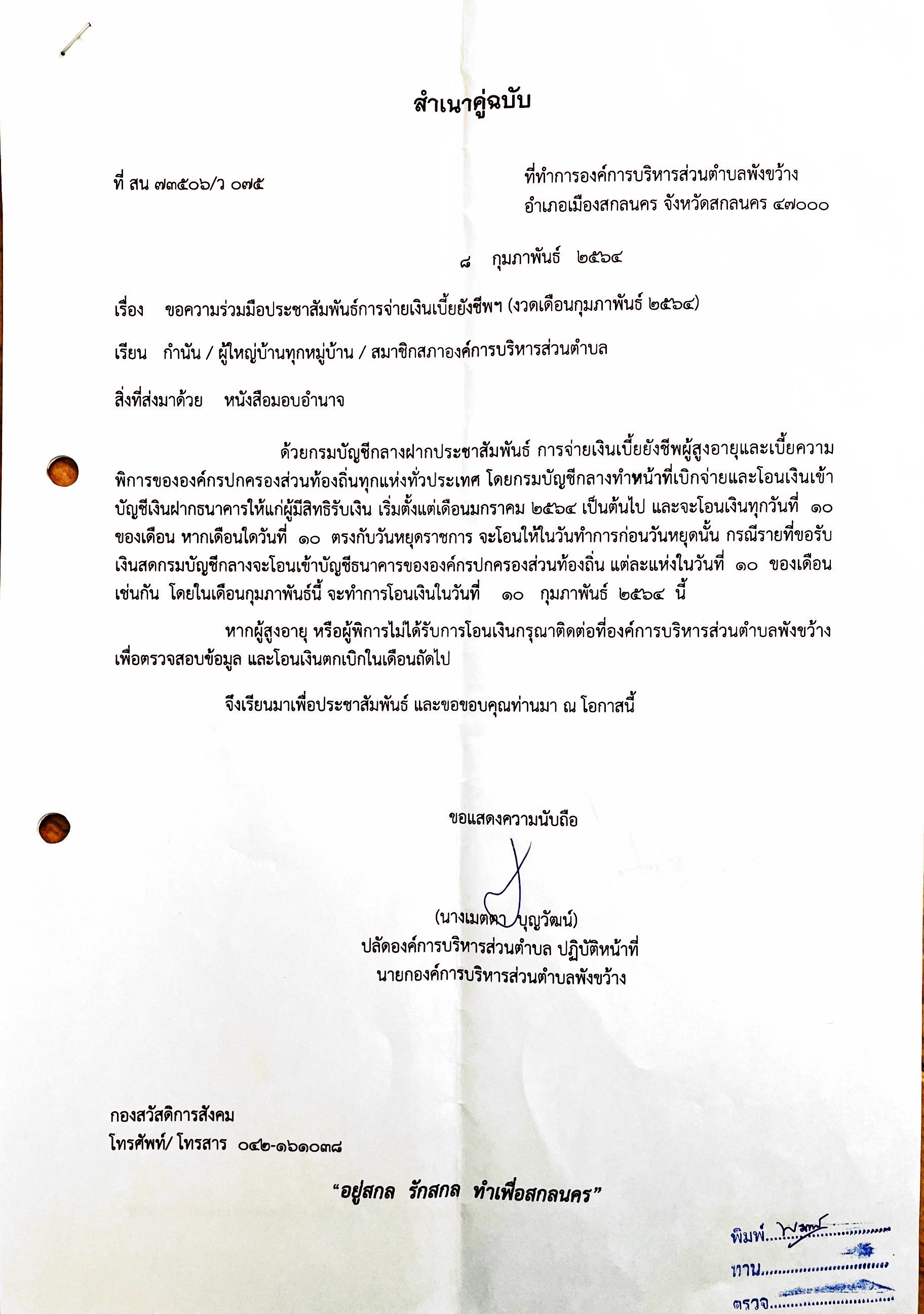 ชื่อเรื่อง : ประชาสัมพันธ์เบี้ยยังชีพประจำเดือนกุมภาพันธ์