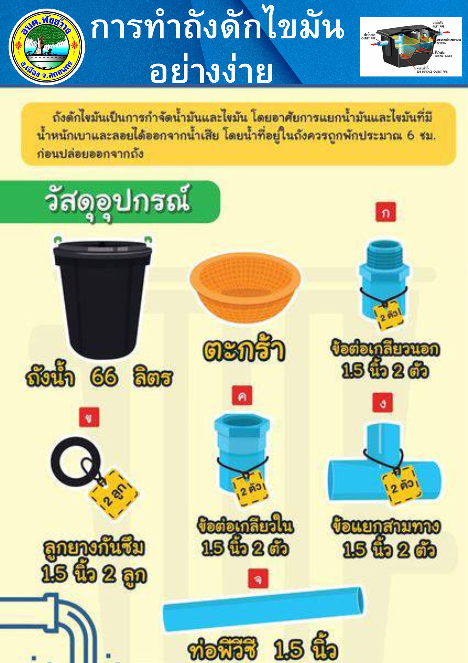 ชื่อเรื่อง : ประชาสัมพันธ์การจัดทำถังดักไขมัน